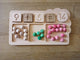 Kinder können die Holzperlen in die präzise gefrästen Vertiefungen der Holzdominos legen.